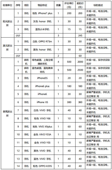 6、手機(jī)、麻將機(jī)、打印機(jī)一批拍賣成交后,買受人需要到貴陽市公安局花溪分局領(lǐng)取標(biāo)的物,提取運(yùn)輸費(fèi)用由買受人自行承擔(dān)。