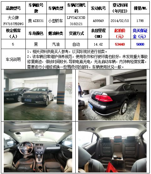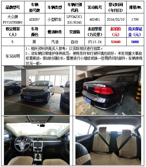 拍品編號(hào)3:大眾牌FV7187FBDWG小型轎車(chē)一輛