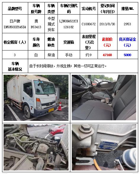 拍品編號(hào)5:日產(chǎn)牌ZN5050XXYA5Z4中型廂式貨車(chē)一輛