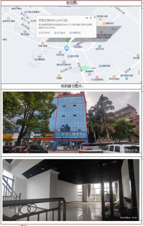 1、標(biāo)的位于興義市民航大道南華圣景4幢107號(hào)房屋,房屋總層數(shù)為16層,標(biāo)的所在層數(shù)為1-4層。產(chǎn)權(quán)證號(hào):黔(2018)興義市不動(dòng)產(chǎn)權(quán)第0016025號(hào),房屋證載建筑面積438.56㎡(專有建筑面積:402.24㎡,分?jǐn)偨ㄖ娣e:36.32㎡。每層房屋建筑面積均為109.64㎡),規(guī)劃用途為商業(yè)服務(wù),框架結(jié)構(gòu)。