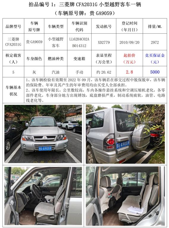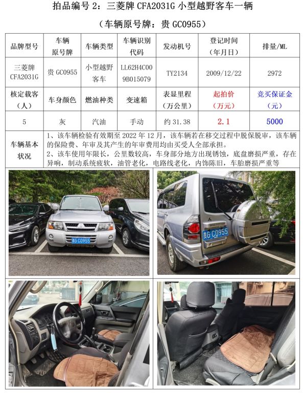 受委托,我公司定于2022年12月02日(星期五)下午14:30在中拍平臺(tái)(https://paimai.caa123.org.cn/)及安順市西秀區(qū)黃果樹(shù)大街345號(hào)黔中大廈安順農(nóng)行三樓會(huì)議室采用網(wǎng)絡(luò)與現(xiàn)場(chǎng)同步拍賣(mài)方式公開(kāi)拍賣(mài)以下標(biāo)的: