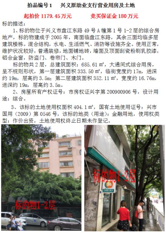 一、興義原助業(yè)支行營(yíng)業(yè)用房及土地,建筑面積685.61㎡;