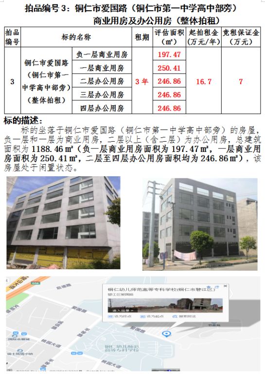 三、銅仁市愛國路(銅仁市第一中學(xué)高中部旁)負(fù)一層至四層商業(yè)用房及辦公用房3年租賃權(quán)建筑面積1188.46㎡)