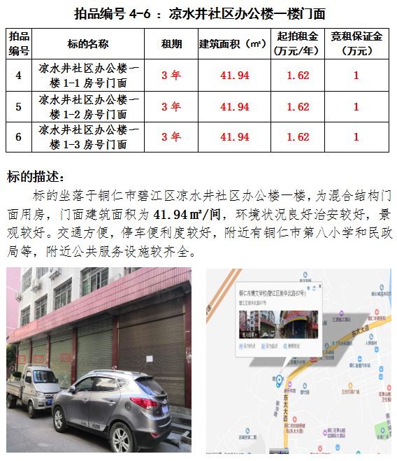 四、涼水井社區(qū)辦公樓一樓門面3間1-1、1-2、1-3)3年租賃權(quán)(建筑面積:41.94㎡/間);
