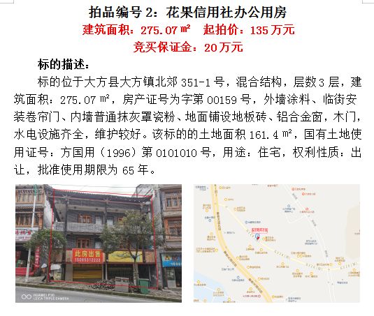 貴州省畢節(jié)市大方縣門面、房產(chǎn)、廠房、設(shè)備及土地拍賣公告