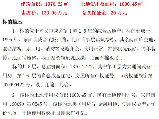 二、興義威舍支行營業(yè)用房及土地,建筑面積1370.22㎡,土地使用權(quán)面積1600.45㎡;