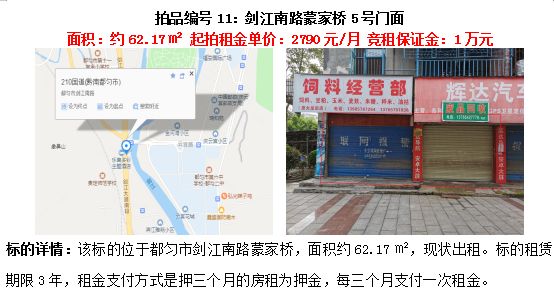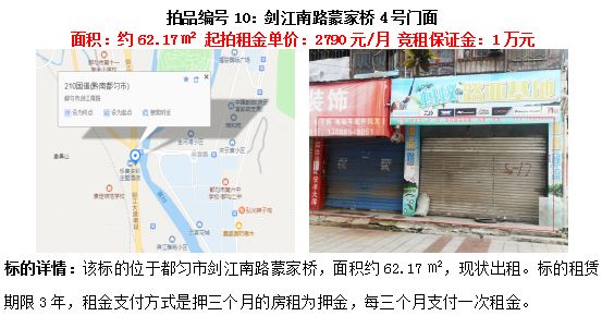 10、劍江南路蒙家橋門面(2間)3年租賃權(quán)(面積約62.17㎡/間);