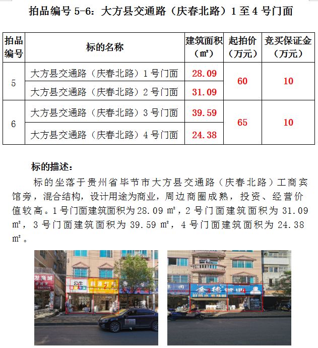 5、大方縣交通路(慶北春路)4間門面(建筑面積分別為:28.09、31.09、39.59、24.38;