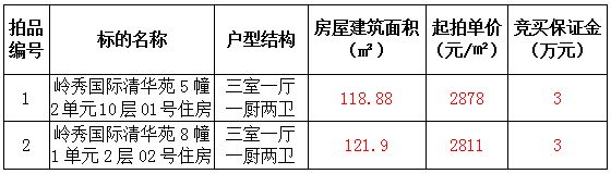 拍品1-2號(hào)  嶺秀國(guó)際清華苑2套住宅用房