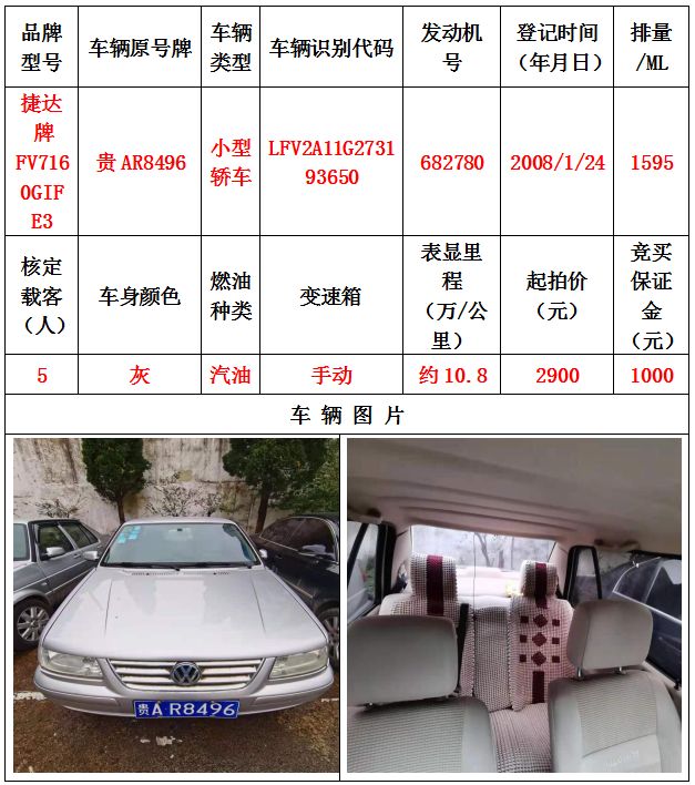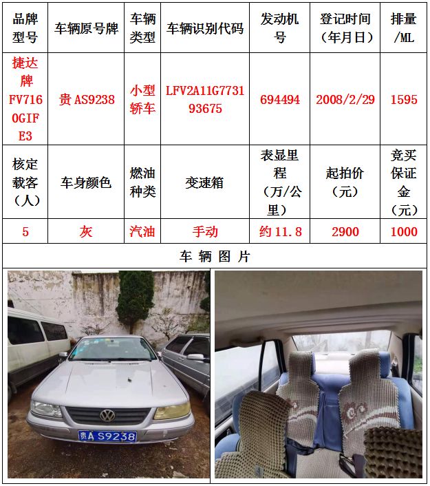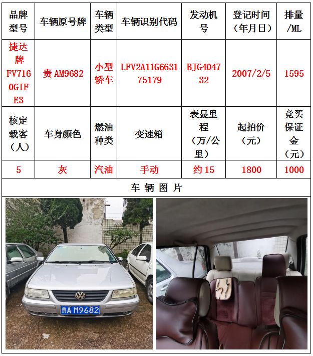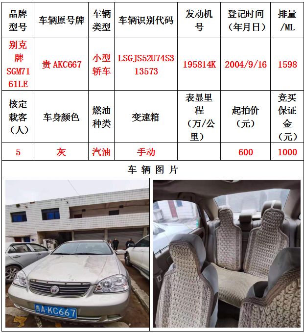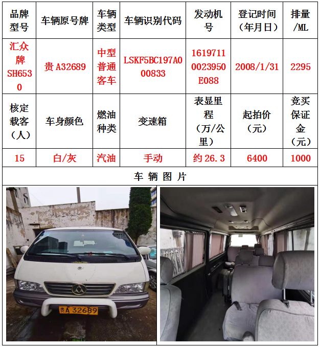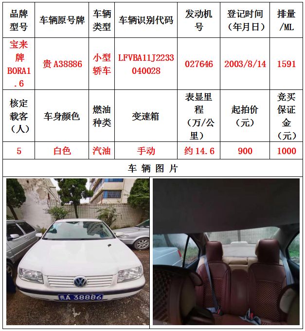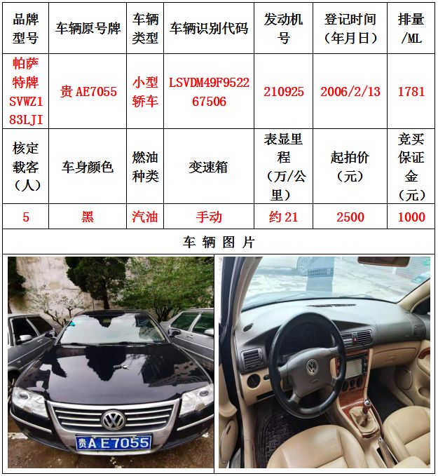 本次拍賣會(huì)拍賣的車輛共計(jì)10輛車,分別為帕薩特牌SVWZ183LJI小型轎車一輛、匯眾牌SH6530中型普通客車一輛、別克牌SGM6517小型普通客車一輛、別克牌SGM7161LE小型轎車一輛、寶來牌BORA1.6小型轎車一輛、捷達(dá)牌FV7160GiFE3小型轎車五輛(詳情見下文),為打包整體拍賣,不作拆分,整體起拍價(jià):33900元,且只對(duì)標(biāo)的現(xiàn)狀進(jìn)行拍賣,不作任何質(zhì)量擔(dān)保。