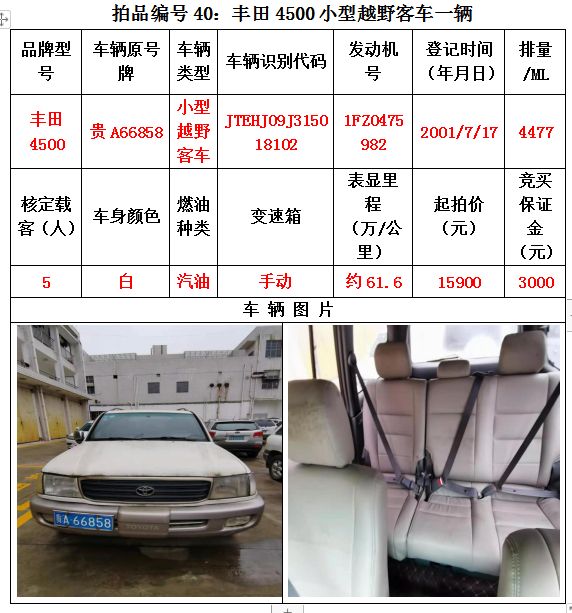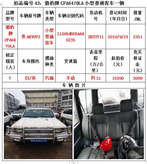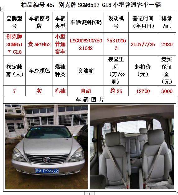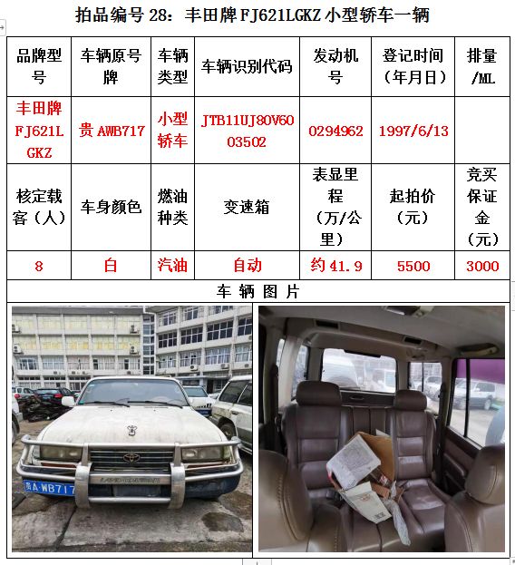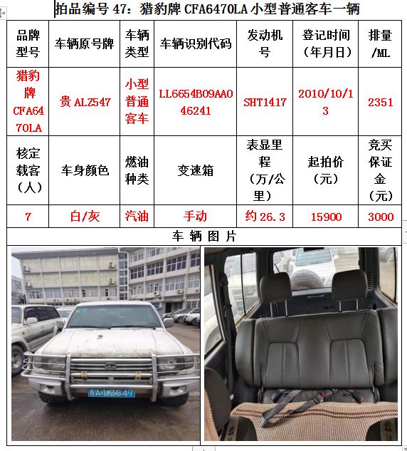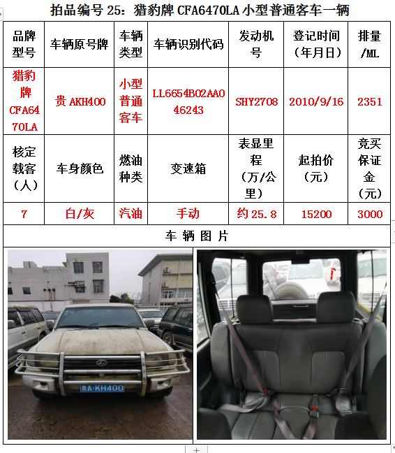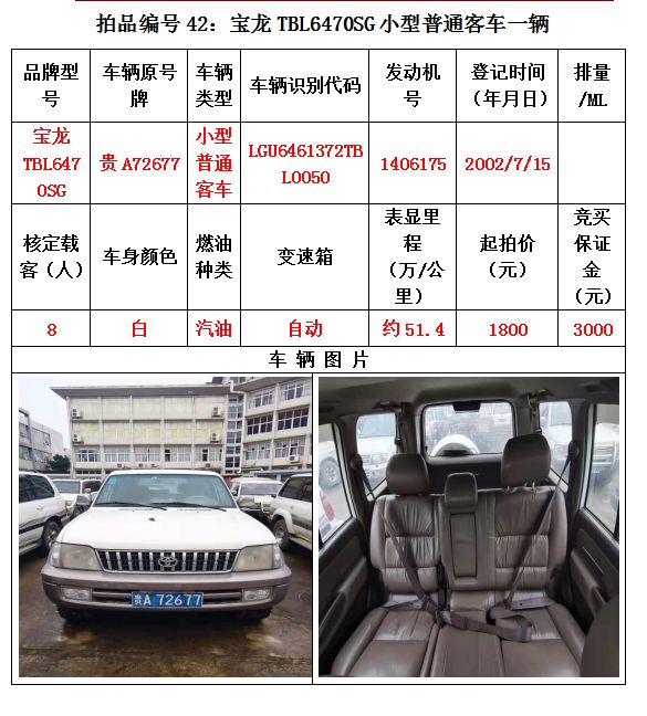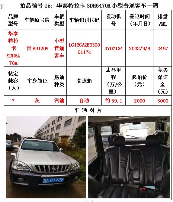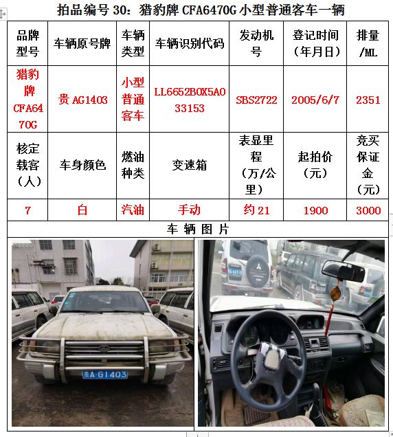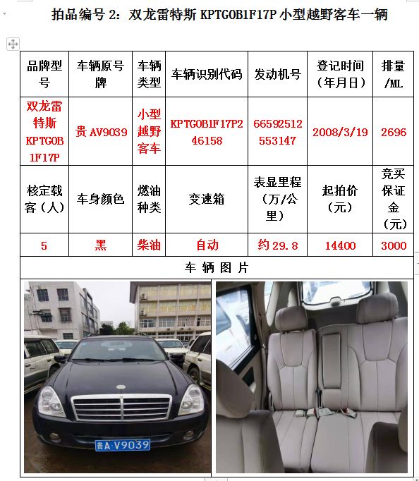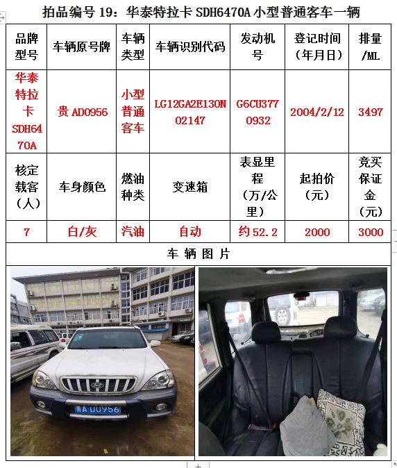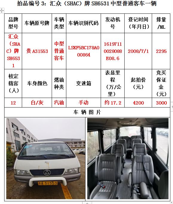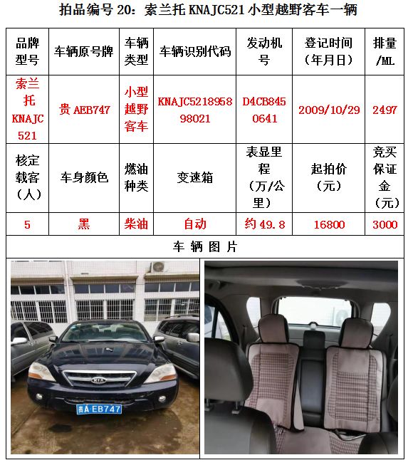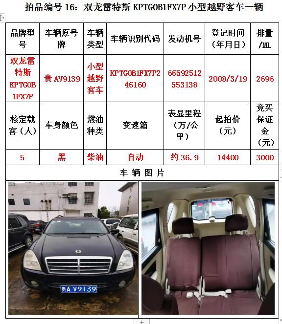受委托,我公司定于2020年12月25日(星期五)下午14:30在貴陽市云巖區(qū)浣紗路19號泰合爾酒店三樓會議室公開拍賣以下標的: