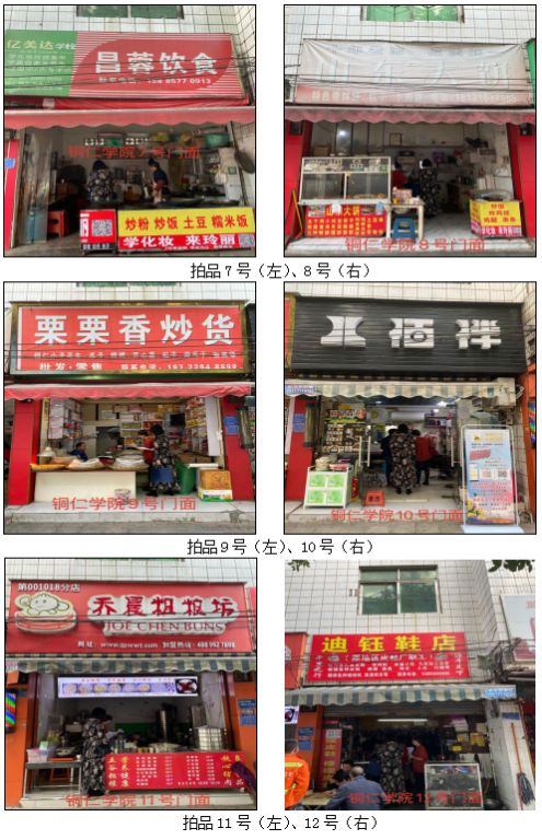 拍品34至46號(hào)標(biāo)的位于銅仁市清水大道實(shí)驗(yàn)小學(xué)東校區(qū),面積11.88——33.92㎡,租賃期3年(2021.04.01至2024.03.31止);