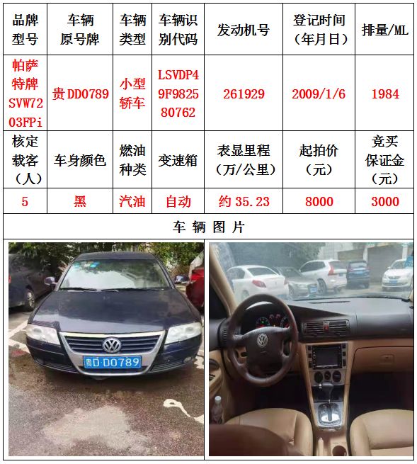 拍品編號(hào)5:帕薩特牌SVW7203FPi小型轎車(chē)一輛