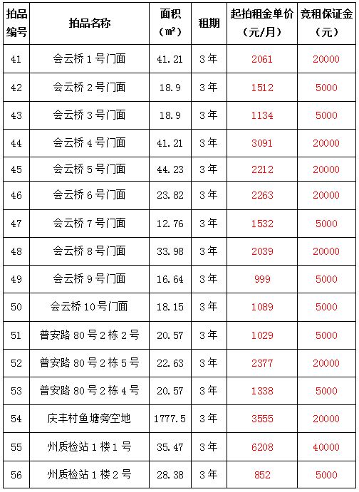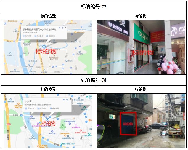 2021年1月28日下午14:00拍賣標(biāo)的共計(jì)38個標(biāo)的,其中:41—72號標(biāo)的目前均為租賃狀態(tài),如承租人參與競租,其享有同等價位優(yōu)先購買權(quán),其余73—78標(biāo)的為閑置狀態(tài)。