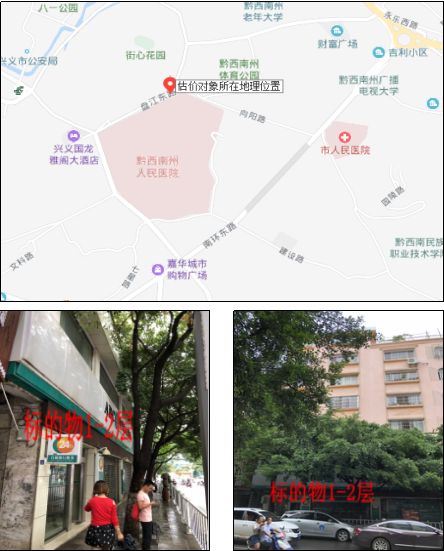 1、標的物位于興義市盤江東路49號A幢第1號1-2層的綜合房地產(chǎn),標的物建成于2005年,南面臨盤江東路,其余三面均臨多層建筑樓棟?;旌辖Y(jié)構,水電、生活燃氣、消防等設施齊全。使用正常,維護狀況較好,普通裝修,地面鋪地磚,墻面及頂面刮瓷粉刷乳膠漆,鋁合金窗,防盜門、卷簾門、木門。