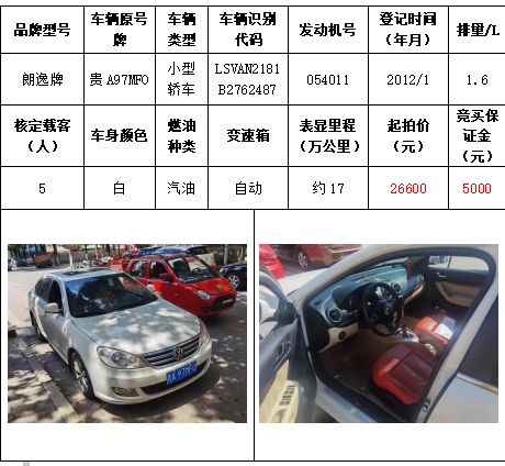 拍品編號(hào)6:朗逸牌小型轎車一輛