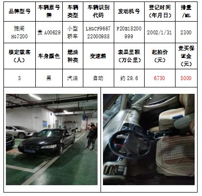 拍品編號(hào)1:雅閣HG7200小型轎車一輛