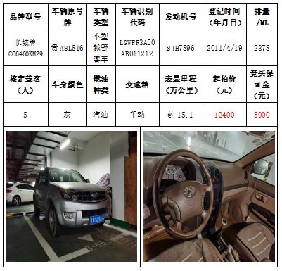 拍品編號(hào)4:長(zhǎng)城牌CC6460KM29小型越野客車一輛