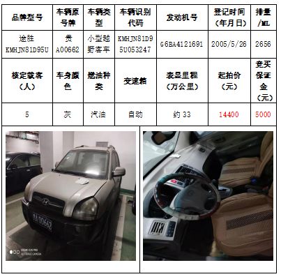 拍品編號(hào)3:途勝KMHJN81D95U小型越野客車一輛