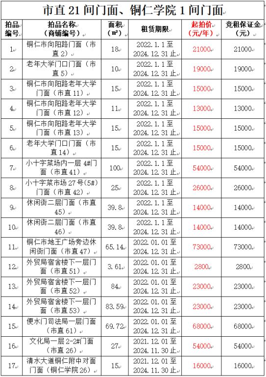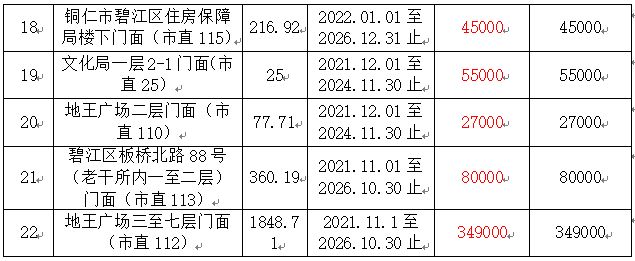 8、碧江區(qū)住房保障局樓下門(mén)面1間,面積:216.92㎡,租賃期:5年;
