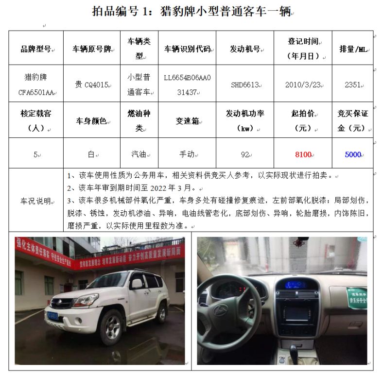 【已結(jié)束】貴州春秋車輛、罰沒物資拍賣公告