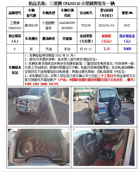 【12月28日】貴州春秋拍賣:機動車拍賣信息
