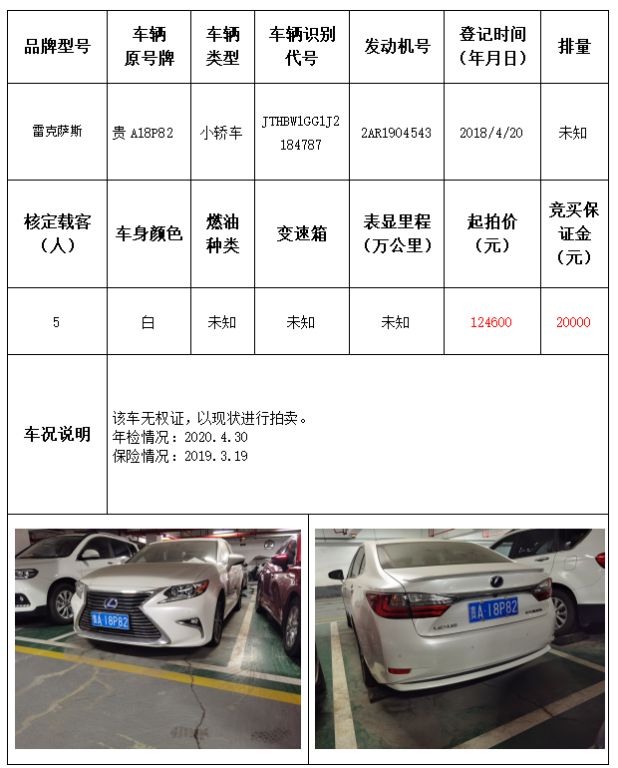 拍品編號(hào)1:雷克薩斯小型轎車一輛