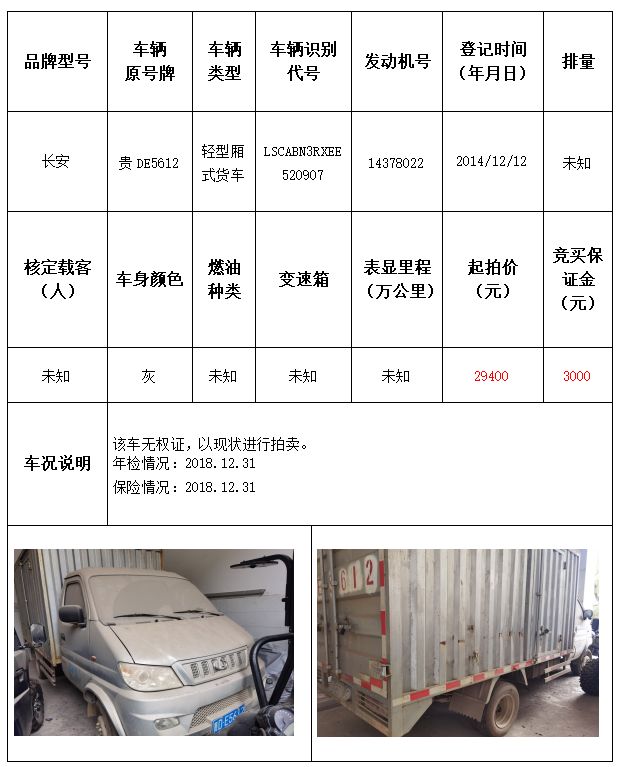 拍品編號(hào)4:長(zhǎng)安輕型廂式貨車一輛