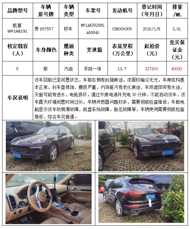拍品編號(hào)6:凱宴WP1AB292轎車一輛