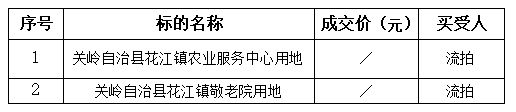 受委托,我公司于2022年1月7日(星期五)下午14:30在關(guān)嶺布依族苗族自治縣頂云天書酒店旁城投集團(tuán)二樓會(huì)議室面向社會(huì)公開拍賣關(guān)嶺自治縣花江鎮(zhèn)農(nóng)業(yè)服務(wù)中心用地和關(guān)嶺自治縣花江鎮(zhèn)敬老院用地,其結(jié)果如下: