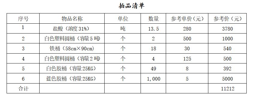 該批標(biāo)的為整體拍賣,鹽酸是氯化氫(HCl)的水溶液[2],屬于一元無機(jī)強(qiáng)酸,工業(yè)用途廣泛。鹽酸的性狀為無色透明的液體,有強(qiáng)烈的刺鼻氣味,具有較高的腐蝕性??捎糜诜治龌瘜W(xué)、酸洗鋼材、制有機(jī)化合物、制無機(jī)化合物、控制pH等。