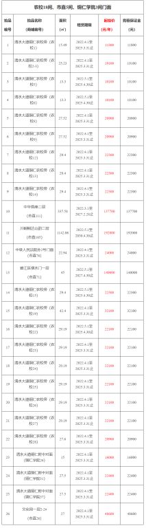 25、清水大道銅仁附中對(duì)面(商鋪編號(hào):銅仁學(xué)院37),面積:27.5㎡,租賃期:3年,起拍價(jià):22400元/年,競(jìng)租保證金:22400元;