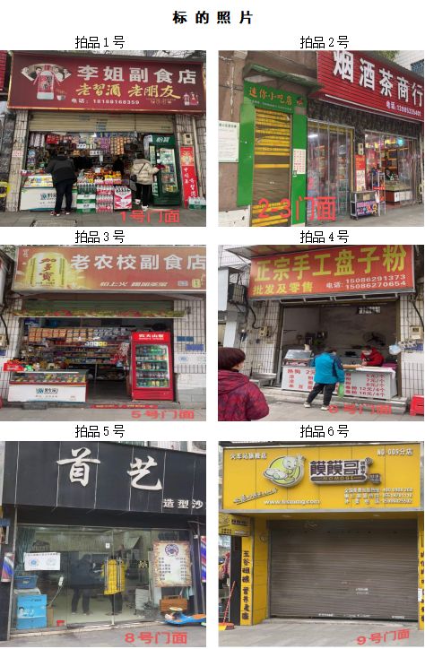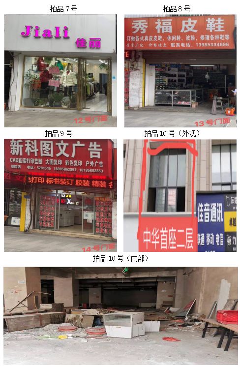 拍品1至9號(hào)標(biāo)的:位于清水大道銅仁農(nóng)校旁,地理位置優(yōu)越,屬于黃金大道。附近有大專(zhuān)、中學(xué)、小學(xué)、幼兒園等,教學(xué)配套齊全;擁有眾多小區(qū),人口流動(dòng)能力強(qiáng),固定人口較多;周?chē)谐?、商?chǎng),人口流動(dòng)性強(qiáng)。地理位置優(yōu)越,屬于臨街門(mén)店,升值空間較大;地區(qū)基礎(chǔ)設(shè)施完善,公共交通、公共停車(chē)設(shè)施的增加,使該地升值空間進(jìn)一步增大;建筑結(jié)構(gòu):磚混,面積:13.3㎡至29.4㎡不等(具體面積見(jiàn)上表),租賃期3年(具體日期見(jiàn)上表),保養(yǎng)情況:較好。