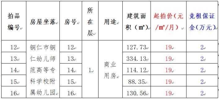 拍品編號12-16號:銅仁幼兒師范高等??茖W(xué)校附屬幼兒園12至16號商業(yè)房地產(chǎn)