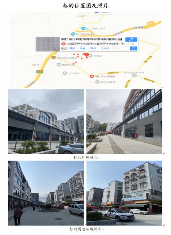 標(biāo)的位于銅仁幼兒師范高等專科學(xué)校附屬幼兒園,所在樓棟為商業(yè)樓,房屋總層數(shù)為3層,標(biāo)的位于該樓棟的第1層,為步梯房,建筑面積為1165.8平方米,框架結(jié)構(gòu),層高約3.5米-4.5米,用途為商業(yè)用房,目前處于空置狀態(tài),建成于2019年。