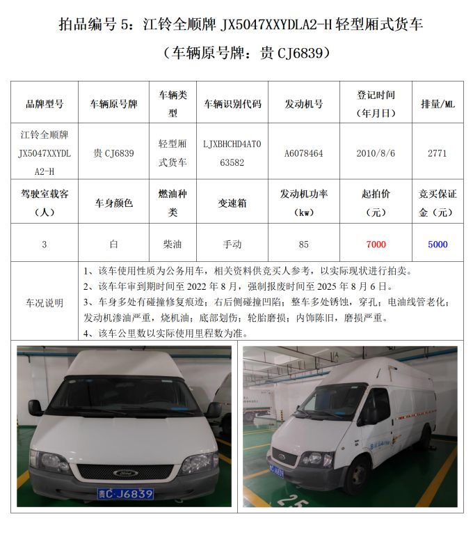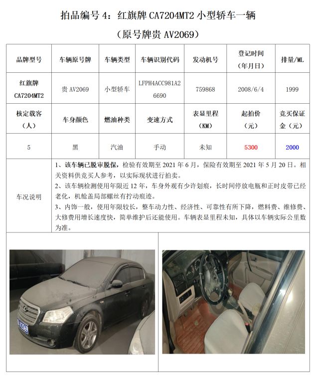 傳祺牌、福特牌、雅閣牌、紅旗牌、江鈴全順牌各類機動車,共計7輛。