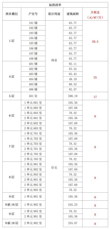 2.該標(biāo)的1、4、5層設(shè)計(jì)用途為商業(yè),6-9層設(shè)計(jì)用途為住宅。