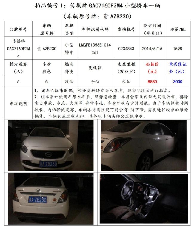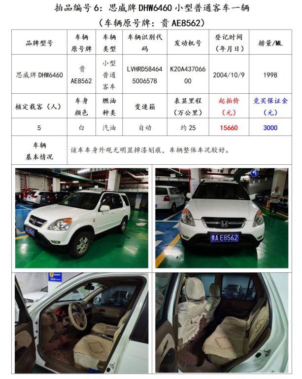 傳祺牌、福特牌、雅閣牌、大眾牌、日產牌、思威牌各類機動車,共計6輛。