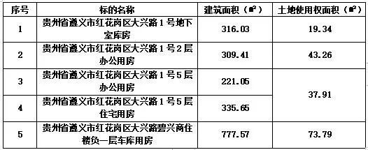 拍品編號5:貴州省遵義市紅花崗大興路地下室、辦公樓、住宅、車庫(整體拍賣)