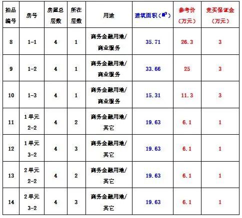 該批標(biāo)的均坐落于貴州省遵義市湄潭縣湄江街道茶鄉(xiāng)北路,房屋建筑面積15.31㎡-35.71㎡,樓層:共4層,層高:1層約3.5m,2-3層約2.8m;權(quán)利類型:國有建設(shè)用地使用權(quán)/房屋(構(gòu)筑物)所有權(quán);權(quán)利性質(zhì):國有土地/作價(jià)出資(入股)/自建房;房屋結(jié)構(gòu):混合結(jié)構(gòu),使用期限至2048年12月15日;目前用作倉庫等。