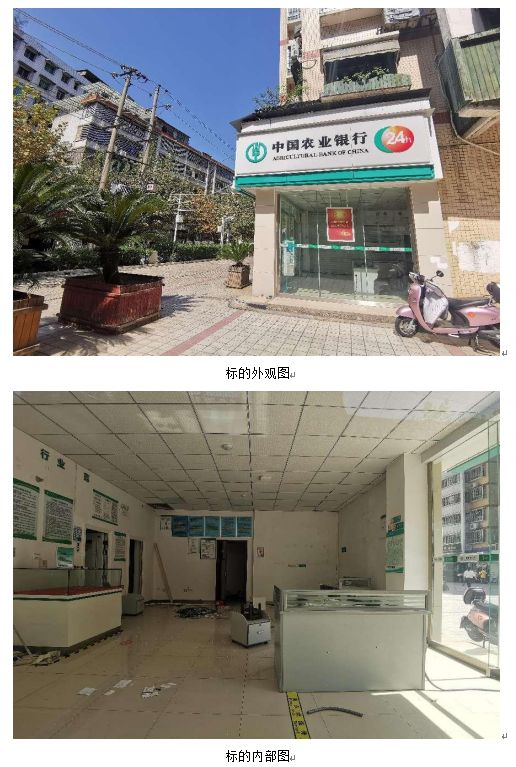 1、該標(biāo)的位于貴州省遵義市紅花崗區(qū)內(nèi)環(huán)路茍家井農(nóng)行營業(yè)所1層,西臨內(nèi)環(huán)路,其余三面臨其他物業(yè)地塊,周邊商業(yè)氛圍濃重,交通便利,水、電設(shè)施齊全。標(biāo)的按照銀行營業(yè)點(diǎn)進(jìn)行過簡單裝修。