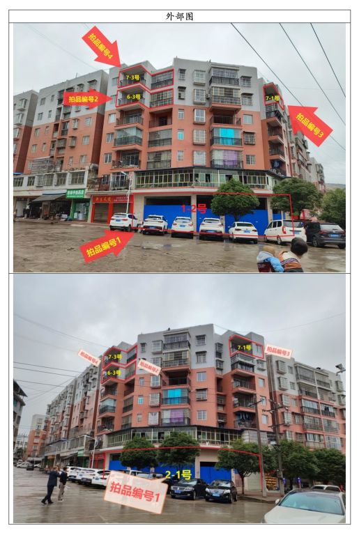 1、標的坐落于甕安縣玉山鎮(zhèn)玉山街上欣隆苑小區(qū)二組團6棟,標的所在樓棟總層數(shù)為7層,拍品編號1位于第1層,層高為3.3米,兩面均臨街;拍品編號2位于第6層,拍品編號3和4位于第7層,層高均為2.8米,戶型皆為2室1廳1廚1衛(wèi),混合結(jié)構(gòu);照明、通訊、水電等配套設(shè)施齊全。周邊有玉山小學、郵政銀行、好樂購購物廣場、玉山農(nóng)貿(mào)市場等生活配套設(shè)施。