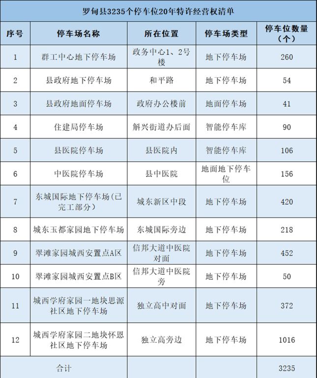 一、羅甸縣3235個停車位20年特許經(jīng)營權