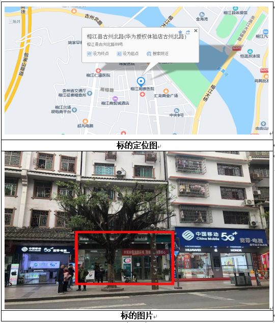 標(biāo)的位于貴州省榕江縣古州鎮(zhèn)古州北路89號,磚混結(jié)構(gòu),2003年建成,室內(nèi)照明、通訊、水電等配套設(shè)施齊全,入戶門為卷簾門,維護(hù)狀況一般,目前為閑置狀態(tài),營業(yè)用房部分層高約4.5m、無證部分層高約2m。
