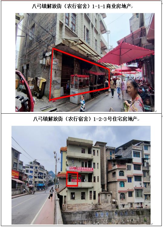 標(biāo)的位于三穗縣文筆街道解放路、八弓鎮(zhèn)解放街(農(nóng)行宿舍)1-1-1商業(yè)房地產(chǎn)、八弓鎮(zhèn)解放街(農(nóng)行宿舍)1-4-2號、1-2-3號、1-4-1號住宅房地產(chǎn),磚混結(jié)構(gòu),1991年建成,水、電、通訊等設(shè)備設(shè)施齊全,使用正常,維護(hù)狀況一般,1、2層高約4m,3-5層高約3m。