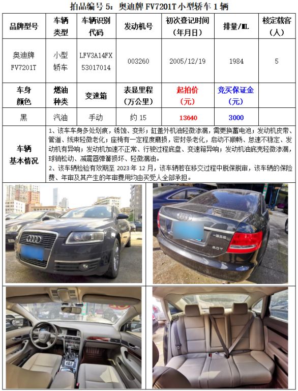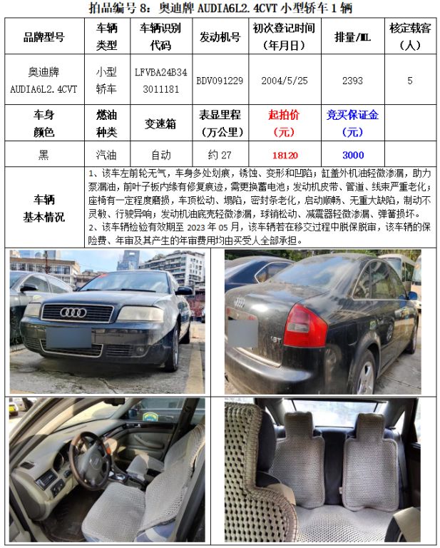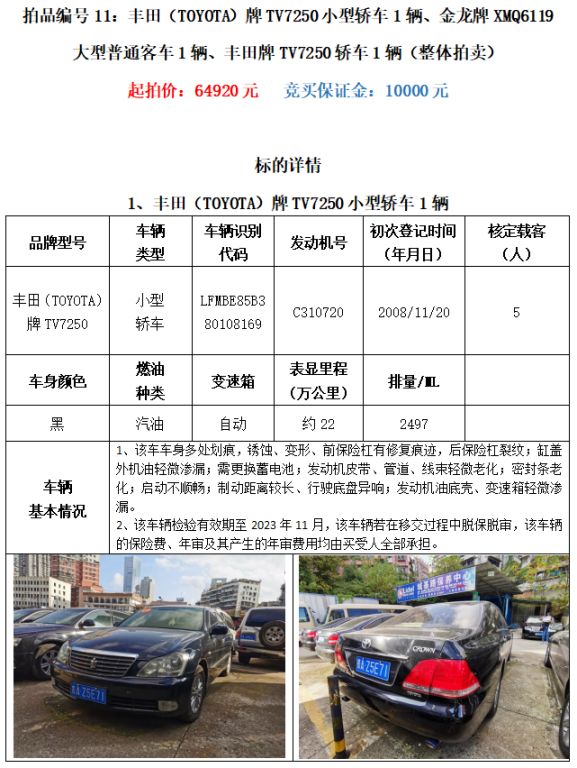5、繳納競(jìng)買(mǎi)保證金的截止時(shí)間為:2023年8月25日中午12:00止,競(jìng)買(mǎi)保證金到賬情況以到貴州春秋拍賣(mài)有限責(zé)任公司賬戶(hù)顯示為準(zhǔn)。
