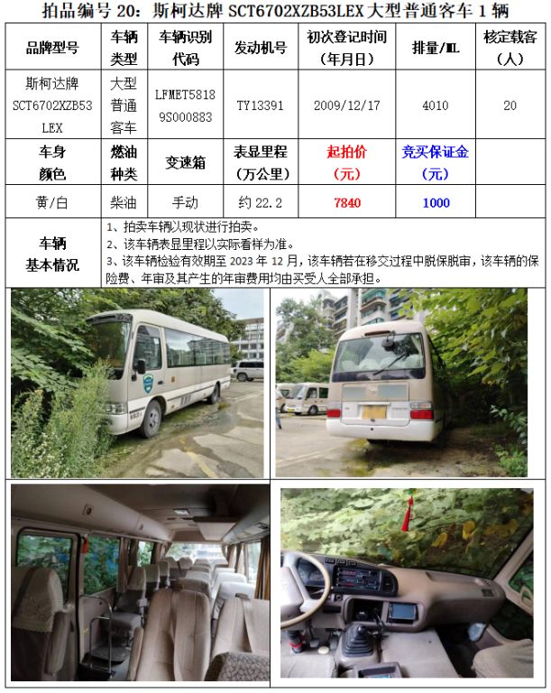 受委托,我公司定于2023年8月25日(星期四)下午14:30時(shí),在貴州省公共資源交易中心開(kāi)標(biāo)室多功能廳(貴陽(yáng)市南明區(qū)遵義路)公開(kāi)拍賣(mài)以下標(biāo)的: