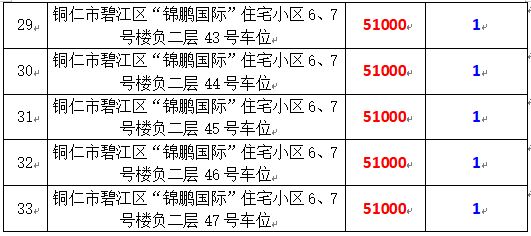 拍品編號15-33:銅仁市碧江區(qū)“錦鵬國際”住宅小區(qū)6、7號樓負一層:32號、35號、53號,負二層:32號-47號共計19個車位