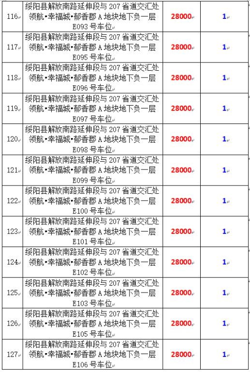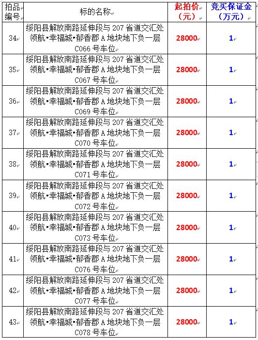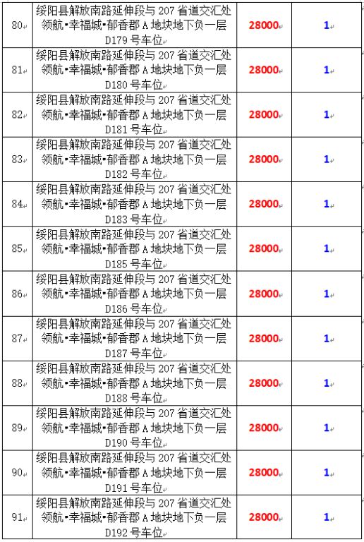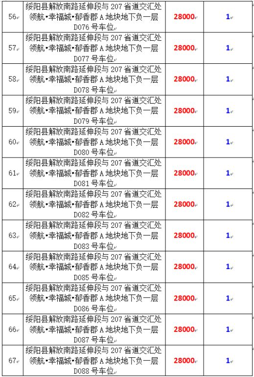 6、綏陽縣解放南路延伸段與207省道交匯處領(lǐng)航?幸福城?郁香郡A地塊地下負一層170個車位,起拍價:28000元/個,競買保證金:1萬元/個。