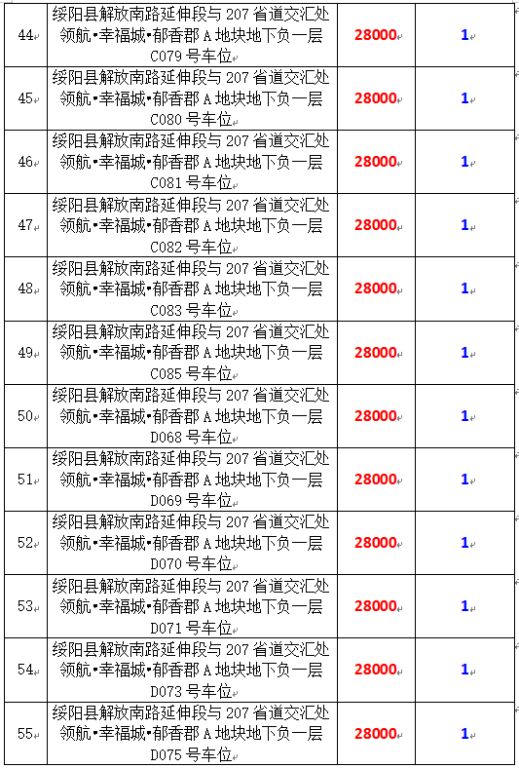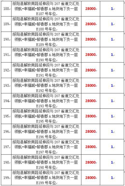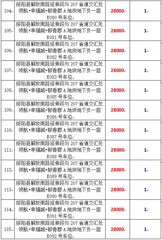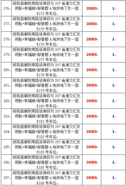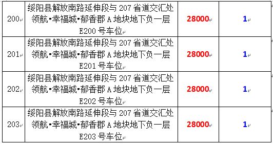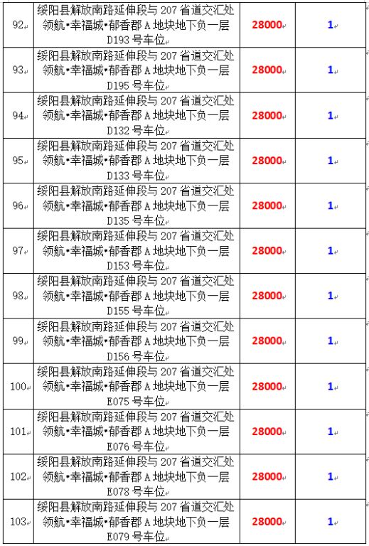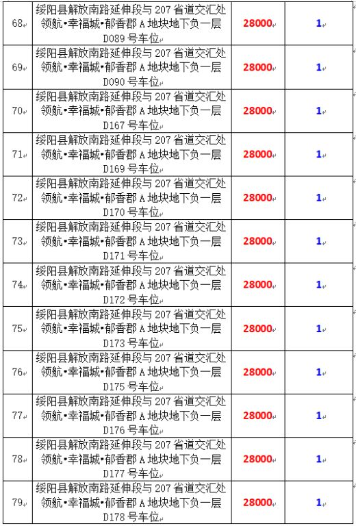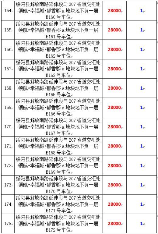 拍品編號34-203:綏陽縣解放南路延伸段與207省道交匯處領(lǐng)航?幸福城?郁香郡A地塊地下負一層170個車位